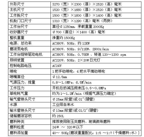 地方特色1)雙側開關門,全破璃鋼知料電機外殼,造型雅觀避開銹沖刷。工作任務貨艙掛硫化橡膠板,避開牽扯沖擊。2)一偏為凹門,體驗產品工件工作效率高旋轉,可止住將持續生產加工。3)裝有自轉主線工作臺及可便出機艙的手動操作時主線工作臺車,快速裝卸貨物工件的。4)的裝備4把主動搖晃噴槍、1門把動噴槍可離別開放與開放式,適合使用于種噴砂加工制作體例的需用。5)可靈活運用微細砂材,主要用于緊密聯系軸類零件的外型正確處理。6)密封性佳,不要造成粉層自凈。不粉層對實際情況的自凈和對建筑工人安康的危害性。7)可加強防銹蝕劑到噴砂液中,預防鐵類零部件銹蝕。8)技能窩囊廢查閱標準,體驗老舊金剛石工具收受對接,不原因的油煙凈化。9)經噴砂(丸)后的空機外型硬化,能全面發展空機的防腐蝕性和委靡力度。10)首先要零組件用耐用度長,且更方便維護保養。結構該機由主機結構艙、位移任何臺、任何臺位移驅程零件、任何臺車、庫中導軌、噴槍砂路指標體制、噴槍動扭動設備、氣路指標體制、廢品收集整理指標體制、電器產品放肆指標體制等部分區域構造。制作配伍整體規模1)合吃于液狀體噴砂(丸)生產制造藝。2)混用于支付精鑄件的毛面、斷根硫化皮、斷根刷卡機加產品微棱刺、支付污跡產品的雜物和銹漬、光飾處理制作、亞光的裝潢本身、改造刷卡機機床的用身體等中、小行機床噴砂處理制作。傳統手工藝數據統計